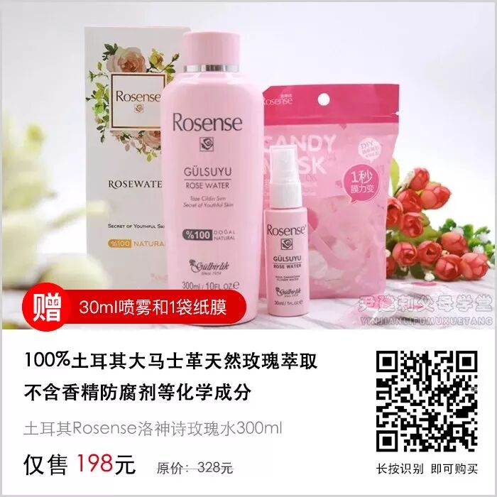 我们购买了市场上某大牌的玫瑰水,才发现成份表里是:20%玫瑰水+其他。但这款洛神诗Rosense玫瑰水的成份表里只有突厥玫瑰这个唯一的成分,即100%玫瑰纯露,不含其他的任何防腐剂、添加剂、酒精等,达到了100%天然口服级别,是款纯天然的肌肤保湿圣品。