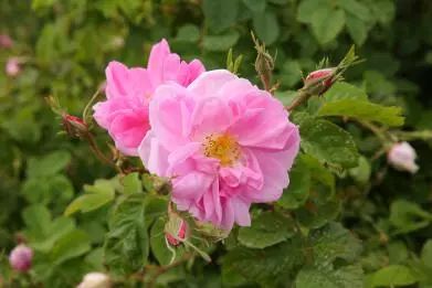 大马士革玫瑰因为每年只开花一次,花期非常短,必须经过休眠期在第二年5月份才能从老枝条上长出花蕾,所以非常珍贵,被称为“玫瑰王后”。