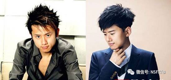 早期的发型也难逃杀马特造型啊,凌乱的头发前面飘着几根刘海,典型的的宅男形象;现在露出额头显得更加帅气稳重,垫高的刘海让脸型更立体。