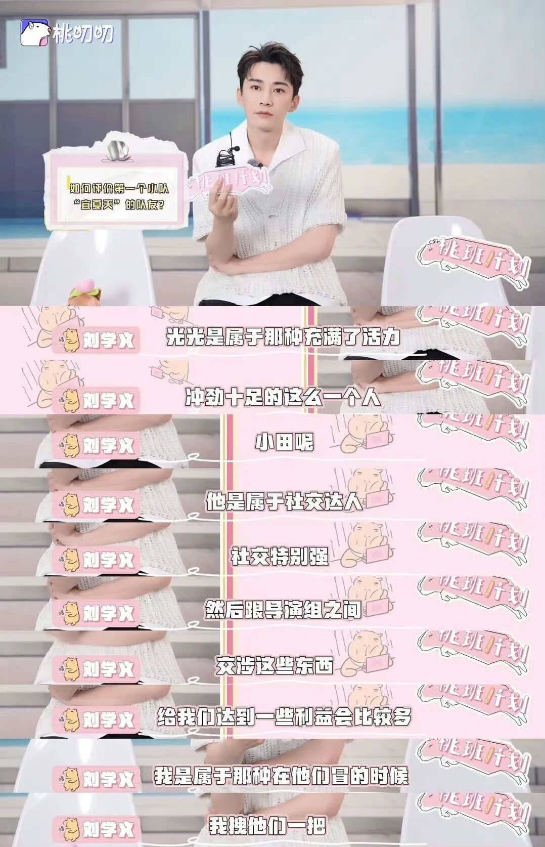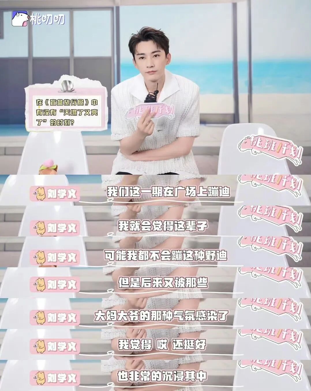 刘学义:来优酷《盲盒旅行局》,包癫的|桃班计划Vol.19 AKA桃叨叨 内地男星 2024-09-15 22:11:48 234 创作不易,用心坚持,欢迎请BaGua喝几杯爱心咖啡!打赏并支持本文 打赏并删除本文 刘学义:来优酷《盲盒旅行局》,包癫的桃班计划Vol.19作者/Logan编导/茜茜叨叨在哈尔滨的备采间采访刘学义,他还没有从与优酷《盲盒旅行局》导演组的对抗状态中出来。玩个游戏吧,他说:“这个游戏既然是为我设计的,那就我说一个规则。我知道你们会练,我也没有练过,大家都是一样的,比较公平。”给他一个权利吧,他说:“你们?你们突然来的这个(权利)有没有炸?”让他说一个分数吧,他说:无论光光有多少积分,我都比他多100分。掌握主动权、小心谨慎、未雨绸缪,什么游戏旅行综艺造就了现在的刘学义?别说刘学义了,看完《盲盒旅行局》第二期,叨叨也没想到一档游戏旅行节目能这么“癫”。未知、反转、脑回路清奇,一个小小的行为动作,也可能改变“命运”的走向,输赢也只是一瞬间的事情。本想佛系旅行的刘学义,逐渐屈服和适应节目节奏,口嫌体正直的接受任务。用时展现着综艺新人美,贡献了不少名场面。综艺小白+社交i人+妈生好嘴=“综艺圣体”优酷《盲盒旅行局》跳出熟人局,组建了三人为一组的半生不熟旅行搭子。既有原生关系,又有新生的人物关系,发生着奇妙的化学反应。岳云鹏,尚筱菊师徒组加纪凌尘,组成爱笑男孩。比相声演员话还密的社交悍匪纪凌尘,让小岳岳治的服服帖帖,形成神奇的牵制关系。见证武艺拿蛋糕名场面的程潇、沈月,旧相识时隔多年重聚。程潇一个J人,带领着沈月、武艺两个P人,在关键时刻梳理战况、拿主意。刘学义这边谁也不认识,掉进“i人地狱”。先是在先导片里面对纪凌尘的火热攻势,一直在建立社交围墙。后来在选人环节,选择了活泼外向的田嘉瑞、夏之光组成“宜夏天”。田嘉瑞和夏之光本身就相熟,刘学义是新加入到这个关系里来的。弟弟们对大哥也有很多好奇,他们觉得刘学义“神秘又有点疯劲儿,需要有人带动他,我想做这份工作!”他们仨算是养成系三兄弟,两个活力满满的弟弟,一个是敏捷的豹,一个是善战的狼,刘学义被动开卷,没苦硬吃。组队完成后的第一个游戏,就让三个人贴贴,直接冲破的i人刘学义的社交距离。“大家还没有建立一个团队默契,就要三个大老爷们脸贴着脸。因为我会有那种社交距离,就我个人而言,还觉得有点尴尬,后来又来了一轮,就还好。”作为队中相对沉稳的大哥,经常在弟弟们“热血上头”的时候往回拉一把,但最后结果是被迫合流,努力拼搏。刘学义也逐渐在综艺中找到自己的定位,“我觉得我应该属于万金油,当大家都没有一些想法的时候,我可以去提一些主意。”背对背默契答题环节,他最先发现游戏bug,掌握提问规律,又美美经费进账。刘学义在综艺首秀《盲盒旅行局》里,展现了特别多既定印象之外的样子。古装美男?在逃现偶男主?刘学义不是特别在意这些title,代拍拍的上班路故意搞怪,叨叨说网友调侃他是“代拍克星”。刘学义说:那咋了?在极度疲惫的情况下,更加放飞自我,和弟弟们一起被海风吹成鸡窝头。妈生好嘴,想说就说。很多话,不是故意造梗,完全是下意识的真实反应。面对纪凌尘贴脸式社交,刘学义留下一句“不想被捎上热搜”,火速逃跑。房费砍价,没有能马上表演的才艺,语气真诚的和老板娘说“给您磕一个”,加速老板娘房费降价的决定。在大巴车上杨超越被热到“疯”力8级,刘学义送了一个风力5级的小风扇,被妹妹吐槽“好微啊”。刘学义:“凑活用吧!还挑肥拣瘦的呢。”耿直对耿直,这对话虽然是互怼,但也很敞亮。片段一经发布,#刘学义一招让杨超越闭麦#迅速登上微博热搜,被网友笑称:“老刘这嘴保持一贯水准!“而第二期节目刚上线没多久,#刘学义说田嘉瑞他不火谁火#又迅速攻占网络,节目后采时更是把田嘉瑞夸得只想捂他嘴,“有些时候我们那么不成功,是不是应该变相的检讨一下我们自己?”沙溢和杨超越对刘学义“贴脸开大”,打趣他和何与在“少歌宇宙”里的角色父子梗,水灵灵的吃了个“亏”。刘学义无发反驳,但张嘴是梗:“这亏我吃的毫无逻辑”,这句话又上了热搜。敢说敢做,这是什么“综艺圣体”,导演组后面一定不要放过这个刘学义啊!挖掘他更多潜能!旅行的快乐还是以“歹毒的方式”体验到了说起《盲盒旅行局》里的最聪明的人,刘学义觉得是武艺,“他每次都能找到一个让自己最不累的方式。”甚至想请武艺做旅行顾问,“他总能选择一条最舒服、最悠闲的线路。”刘学义所在的“宜夏天”小队,三个人在一起,最后的结果是“干就完了”。在泉州风风火火干一天,又能省,又能赚。一天过去还结余300块,刘学义终于想起来自己是来旅行和享受的,秉持着能躺就躺,能蹭就蹭,够用就行。《盲盒旅行局》节目组是不会让这种好事发生的,总是通过各种游戏,挑起竞争。“一直被导演组遛,他们设计的比赛啊什么的,确实还蛮累的。尤其是每一个比赛点与每个比赛点中间,有时候想通关要从头再开始,就特别累。”叨叨问有没有天塌了又亮了的时刻,刘学义分享了在节目中“蹦野迪”的经历。哈尔滨站在广场上和大爷大妈一起跳广场舞,“这辈子可能我都不会蹦这种野迪,但是后来又被那种气氛感染了。我就觉得,哎,还挺好玩,也非常的沉浸其中。”要聊参