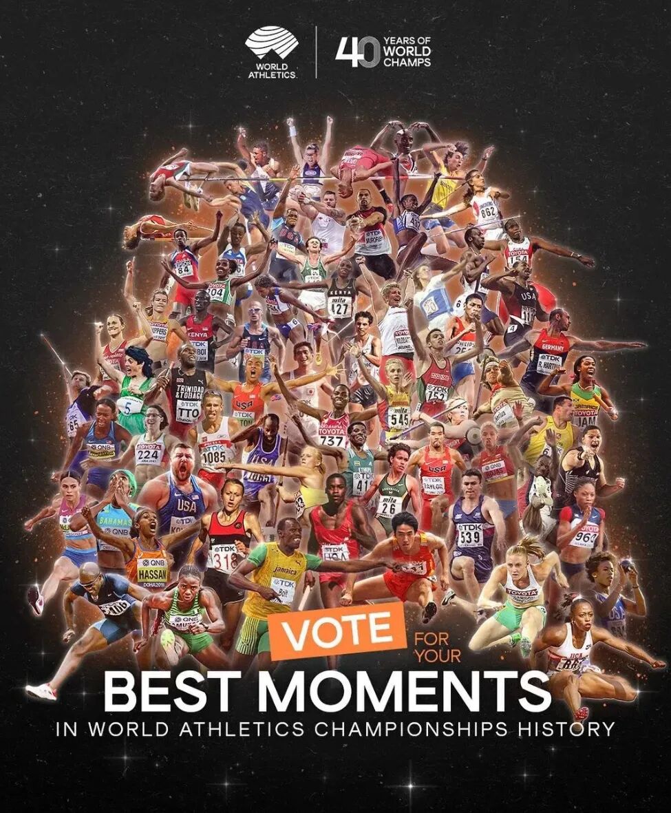 2023是世界田径成立40周年,它在近日发布了40周年纪念海报,中国选手刘翔位于C位,入选画面是当年的“第九道奇迹”——