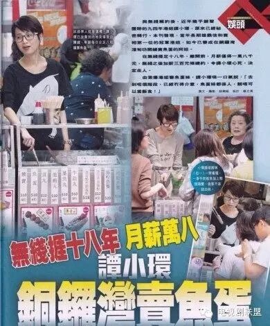 如今的谭小环在铜锣湾开小摊卖鱼蛋。谭小环效力无线18年,月薪仅1万4,续约也只加300块,令其彻底心死,而她在铜锣湾摆摊一个月,赚到4万元,远比在TVB赚得多。她表示,不会介意别人眼光,因为光鲜不可当饭吃。