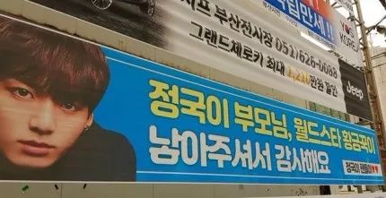 不仅如此,此前粉丝们为迎接他9月1日的生日,还在釜山北区万德洞挂出了“谢谢柾国的父母生下世界明星田柾国”的横幅,这在当时引起了网友的关注。