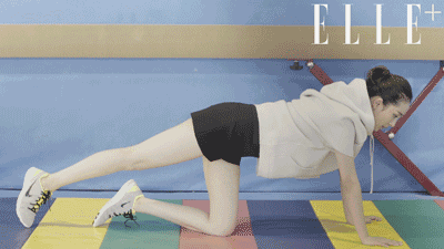 四肢着地,依靠膝盖和手掌的力量保持身体平衡。脚跟指向天花向上抬起。然后把脚收回一边做20个,膝盖着地,然后换一边做。