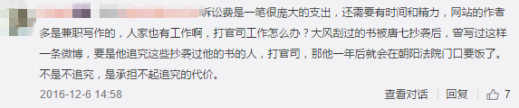 曾有一位经常被抄袭的作者,在面对粉丝为什么不起诉的疑问时说:如果我去告他们,那么明年我就要去朝阳法院门口要饭了。