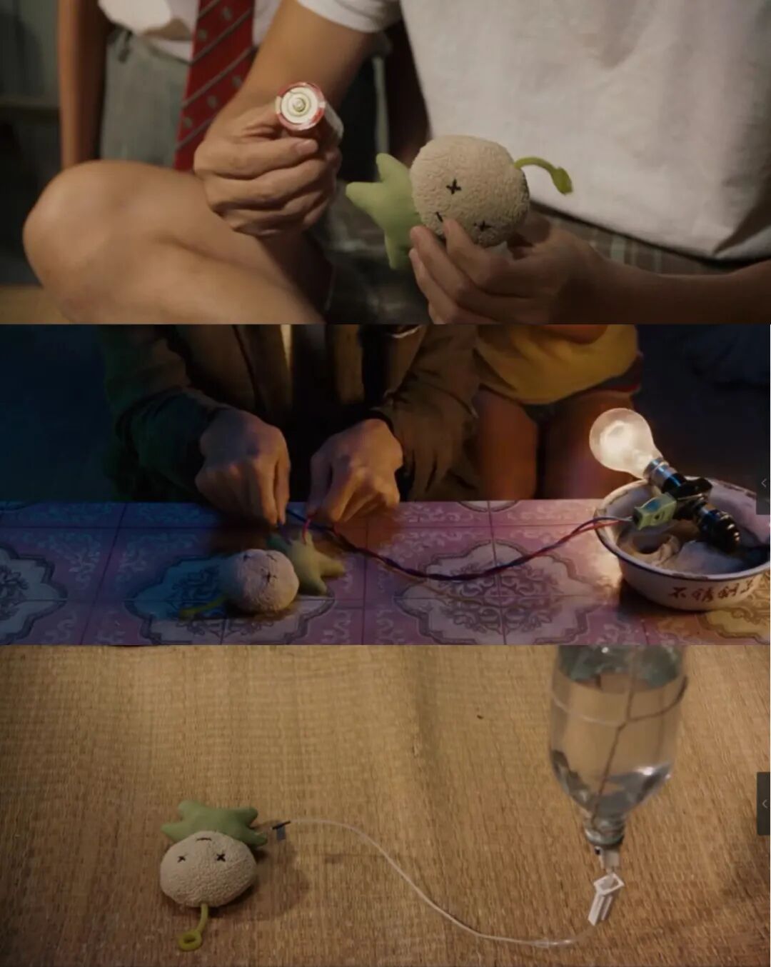 就像小朋友玩过家家一样,一个本来充满悲伤的情节,瞬间就被童趣化解了。