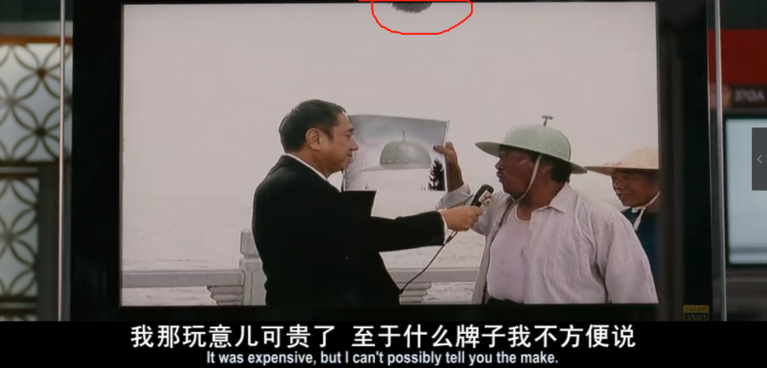 在大叔向记者讲述自己发现飞碟的过程时,镜头特意推进,对比了大叔手里的飞碟照片和戴在大叔头上长得跟飞碟一模一样的帽子,并在最后拉开镜头时露出了上方的收音麦克风。