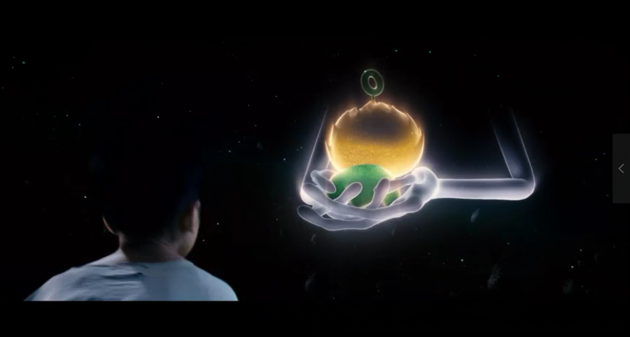 后来在七仔自我介绍的全息投影中出现的这双手,也是对斯皮尔伯格的科幻电影《E.T.外星人》的致敬。
