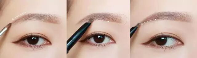 眉形不够手法来凑,用眉笔按照毛发生长情况一根根描绘,最后在梳理一下,让眉毛看起来更自然即可~