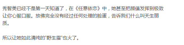 不少女艺人都会在自己的基础眉形上小作修饰,看起来既自然又美丽。比如茜妞前半段直接靠本身的眉毛撑起来,后半段只小小加长眉尾修饰下脸型就好。