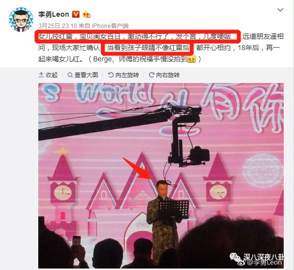 这次给女儿办百日宴,到他致辞时也是激动到哽咽↓