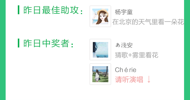 (点击“语音猜歌周冠军”聆听本周冠军的演唱)