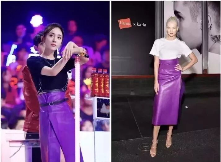 大幂幂和KK撞衫过的一条紫外光色半身长裙。