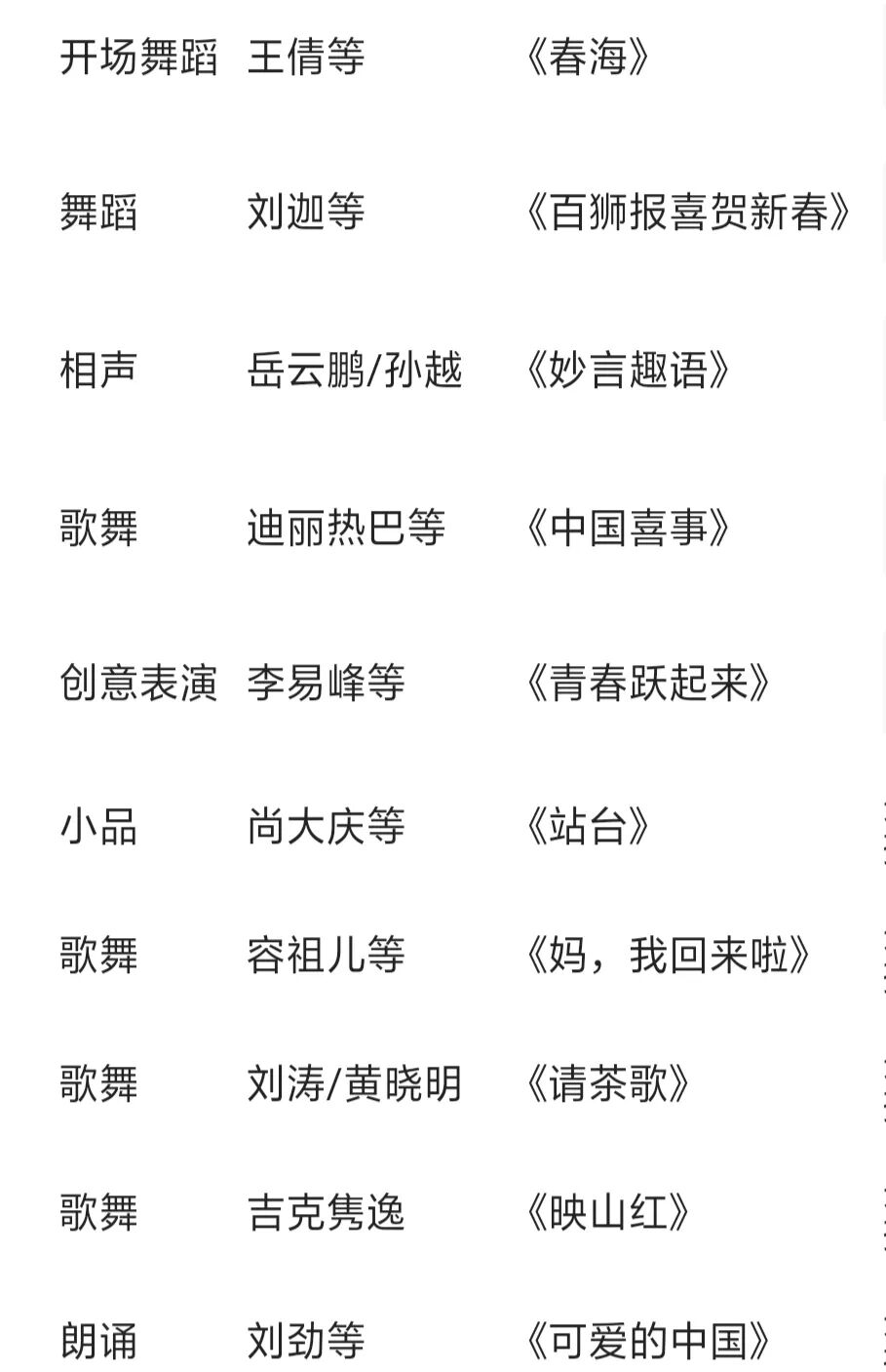 2019央视春晚节目单