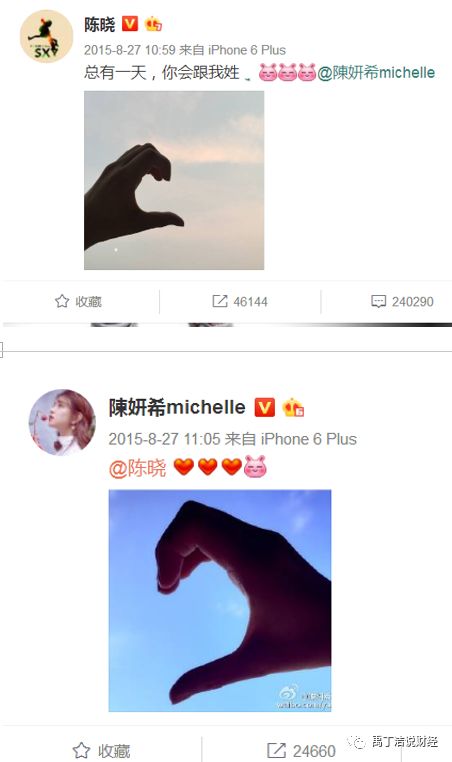 这场“秀恩爱”的大戏,仅仅在两个工作室发表了四条不痛不痒的声明和一张玫瑰花图后,就匆匆谢幕了。一度让人怀疑,该不会是工作室被盗号了吧?毕竟,明星CP恋情宣布的正确打开方式,难道不该是这样的么:像情话boy陈晓,高调@陈妍希表白,“总有一天你会跟我姓”,情话满分,分分钟撩倒一片迷妹。