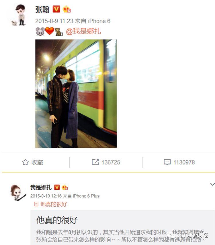 或者像霸道总裁张翰一样,直接一张亲吻图,不需要文字,足以说明一切。而娜扎,更是洋洋洒洒来了一篇长文,记录了两人相遇相知的过程,极大地满足了粉丝们的八卦猎奇心,让人直呼过瘾,祝福。
