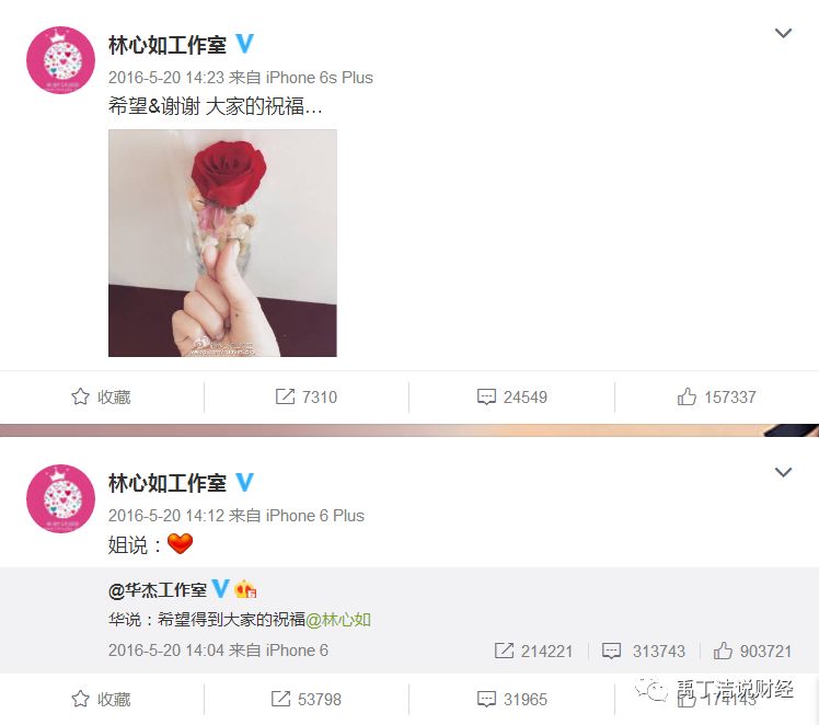 而到了霍建华和林心如这里,粉丝能看见的就是,全程两个工作室在大秀恩爱,而当事人呢?却仿佛什么事儿都没发生过。林心如当月发布的最后一条微博,是恋情公布前一天的新剧宣传。霍建华连微博都没开通过,而他本人出席各大活动,关于恋情,更是只字未提。