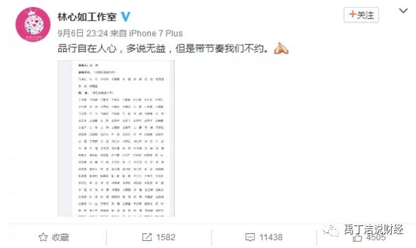 网友纷纷坐不住了,群起而攻之。而林心如工作室的反应照常很佛系:“品行自在人心,多说无益,但是带节奏我们不约。”并附带一则《唐国强周润发周杰伦等中国演员就钓鱼岛事件声明》,在声明人中工作室特意圈出林心如的名字,强调林心如绝非“台独”。