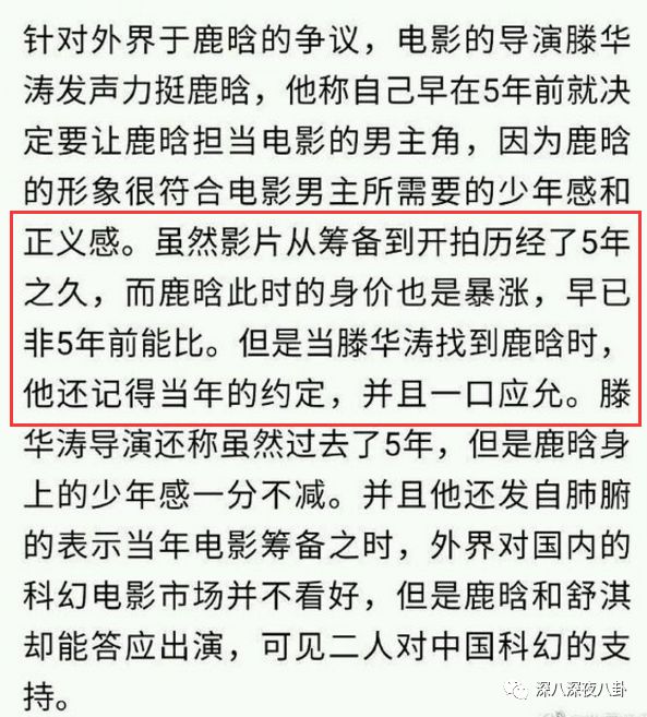 这电影统共就拍了三个月,期间你鹿还不耽误看球,emmm...这片酬还是好赚的