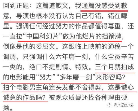 有些人表面道着歉,实际上也是有脾气的,官微表示:你们不分青红皂白说我是烂片,我就甩一堆特效给你看看哪里烂了???