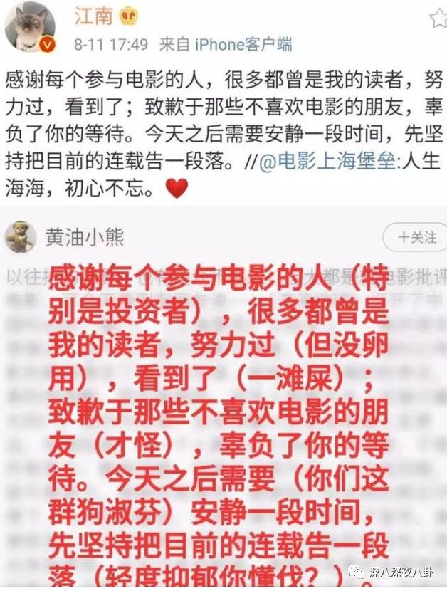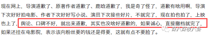 可是小主觉得有位网友说得特别对,如果真的对烂片有B数,最好的做法不是道歉,而是撤档。