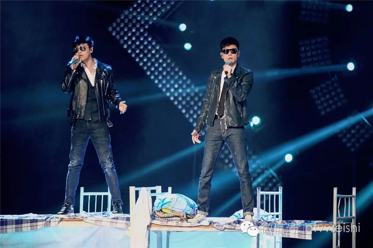 不同于刘涛和薛之谦的梦幻主题,“京剧兄弟”小沈阳和周晓鸥以中国风为主题,将传统的京剧同流行的摇滚乐相结合, 演绎出一幅别开生面的混搭盛宴。舞台上,不仅有武生的舞蹈相伴,还有摇滚乐队的伴奏烘托气氛,将传统曲调同现代韵律相结合,艺术效果十足。另外,在这场传统的京剧大戏上,丑角扮相的周晓鸥在额头及眉骨间用白粉勾勒,颇有几分伶俐风趣,而小生扮相的小沈阳则画着洁净俊美的白面红妆,帅气袭人。两人如此之大的形象反差,遭到了主持人栗坤的调侃:“你请晓欧来是什么目的?晓欧上次为了郭涛而来怎么没主动上台呀?”周晓鸥不假思索的回应道:“那不是我亲哥哥啊,这才是我亲哥哥。”如此看来,两人不仅舞台上配合默契,私下也是交情颇深的好兄弟。