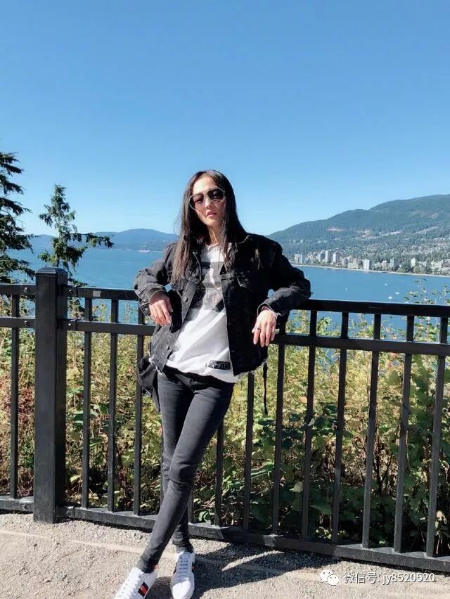 黑色的短款棒球服+白色T恤内搭,下身穿了一件紧身的牛仔裤,酷酷的街头风少女没错了!一头随意的长发披在肩膀上,有种度假feel。