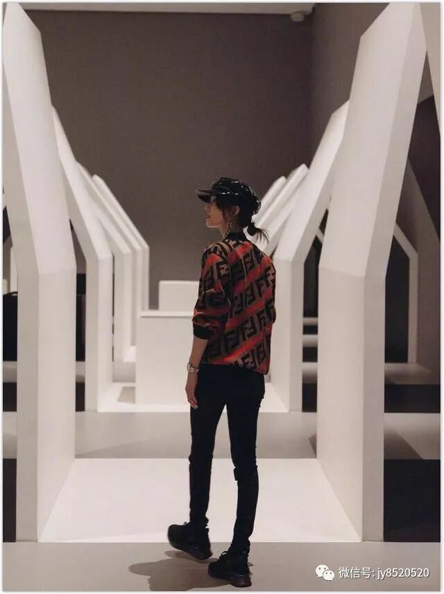 娇小的个子也能潮气十足。头发在脑后扎起小丸子俏皮清新扑面而来,上身的宽松毛衣其实属于男装款,不过穿在张韶涵身上照样很好看,fendi经典的配色和双F图案低调却有着不俗的质感。