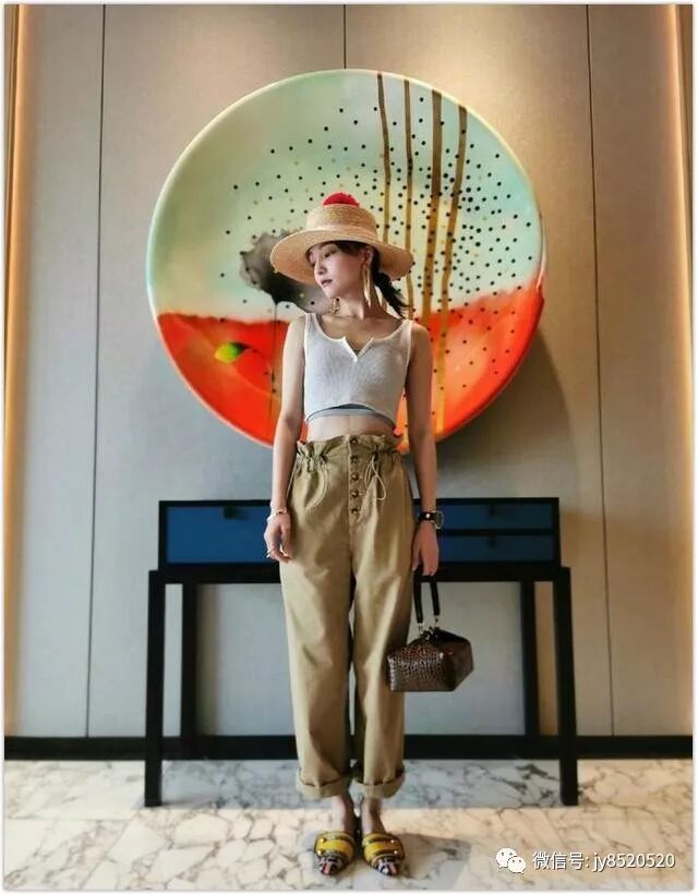 微露的小蛮腰下面穿着一件纸袋阔腿裤,纸袋阔腿裤让她的腰身看起来瘦了不少,而且自带的绑带设计,也非常的具有个性。而且卡其色的裤子不仅没有让她显得皮肤黑黄,反而更能够凸显白嫩。