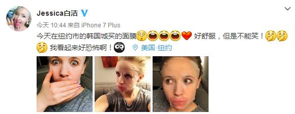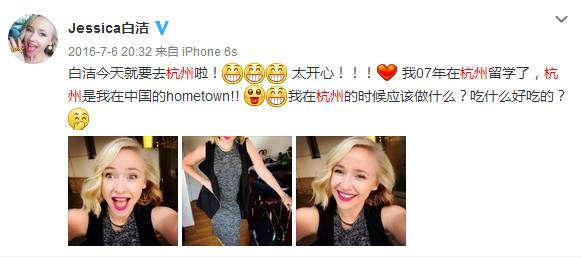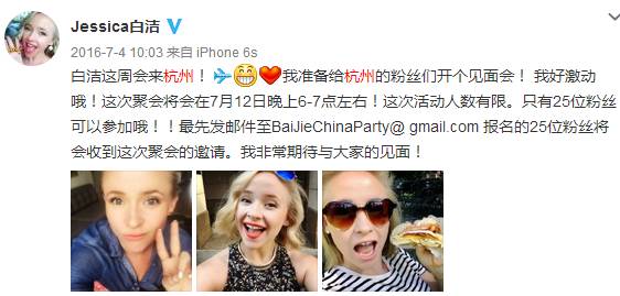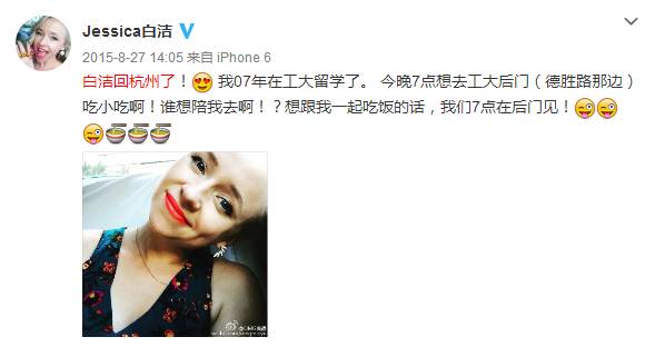 她叫Jessica,中文名白洁,她的微博是用中!文!更!新!的!