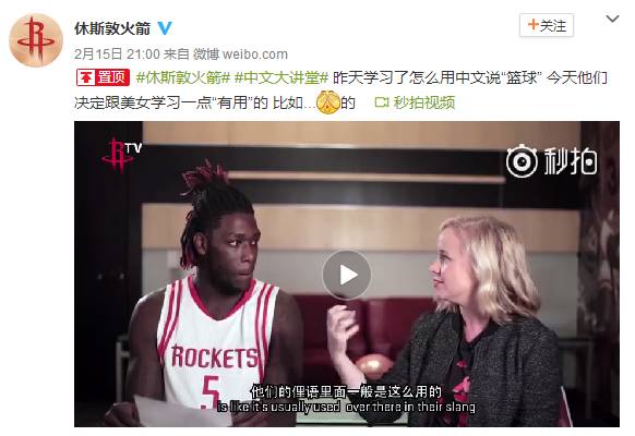第二波学中文,他们开始学习“有用”了,比如怎么夸人,来随意感受下火箭众将叫你“女神”,夸你“太棒了”时的feel——