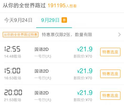 美团猫眼《从你的世界路过》特惠21.9元起预售