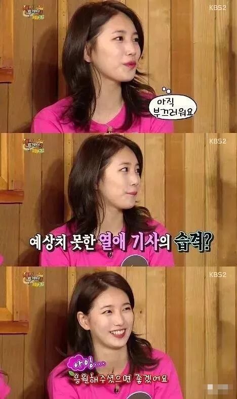 秀智还在节目里谈了公开恋情后的感想,说李敏镐很善解人意,公开后很紧张,也希望大家能支持。