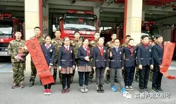 六(5)班和五(1)班的学生们在正月里分别去往庐阳消防大队和庐阳交通警察大队,慰问那些默默奉献的叔叔、阿姨们,向他们敬上最崇敬的队礼,戴上鲜艳的红领巾。