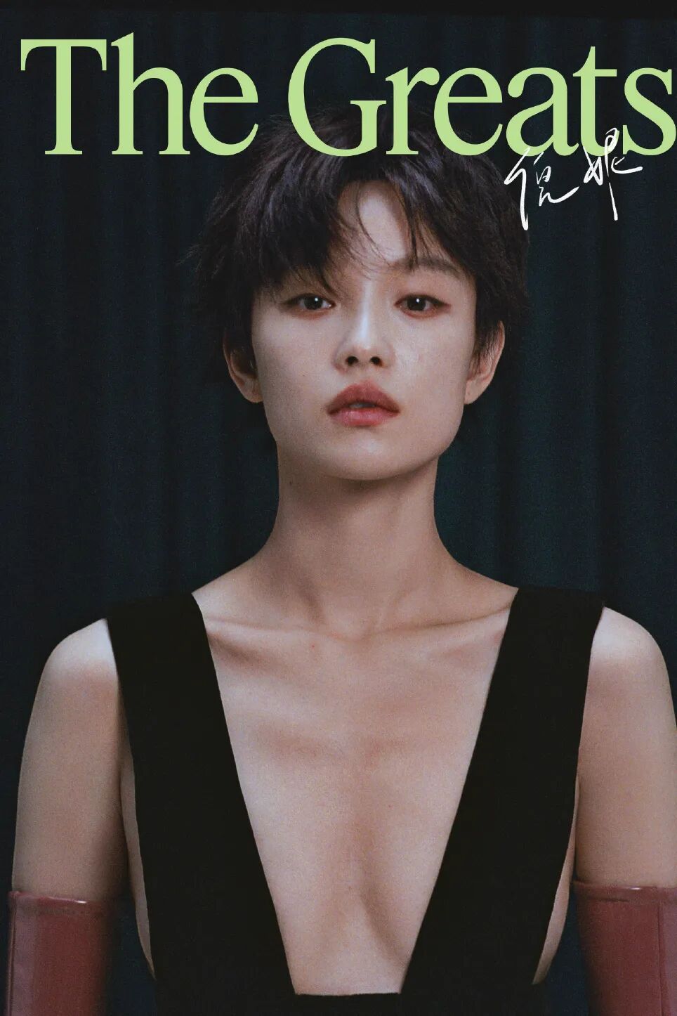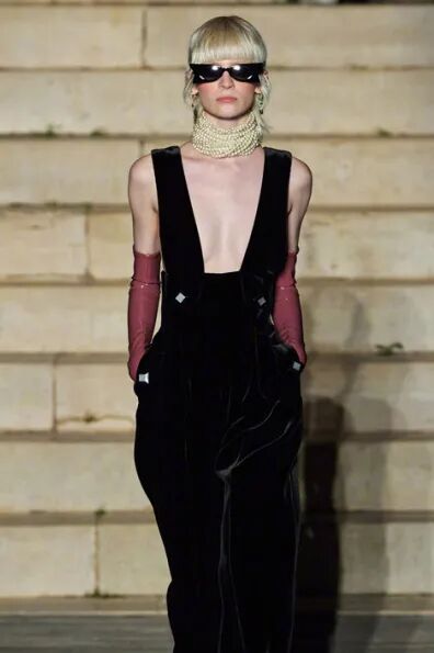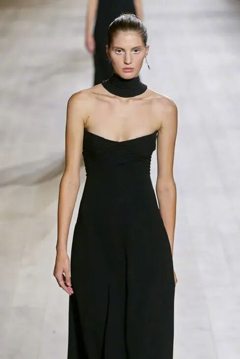 但说实话,比起扮作忧郁少女,个人还是更喜欢她偶尔帅气的一面,例如《T magazine》11月她穿了Gucci2023早春系列一条倒梯形领,无袖黑色连身长裤。