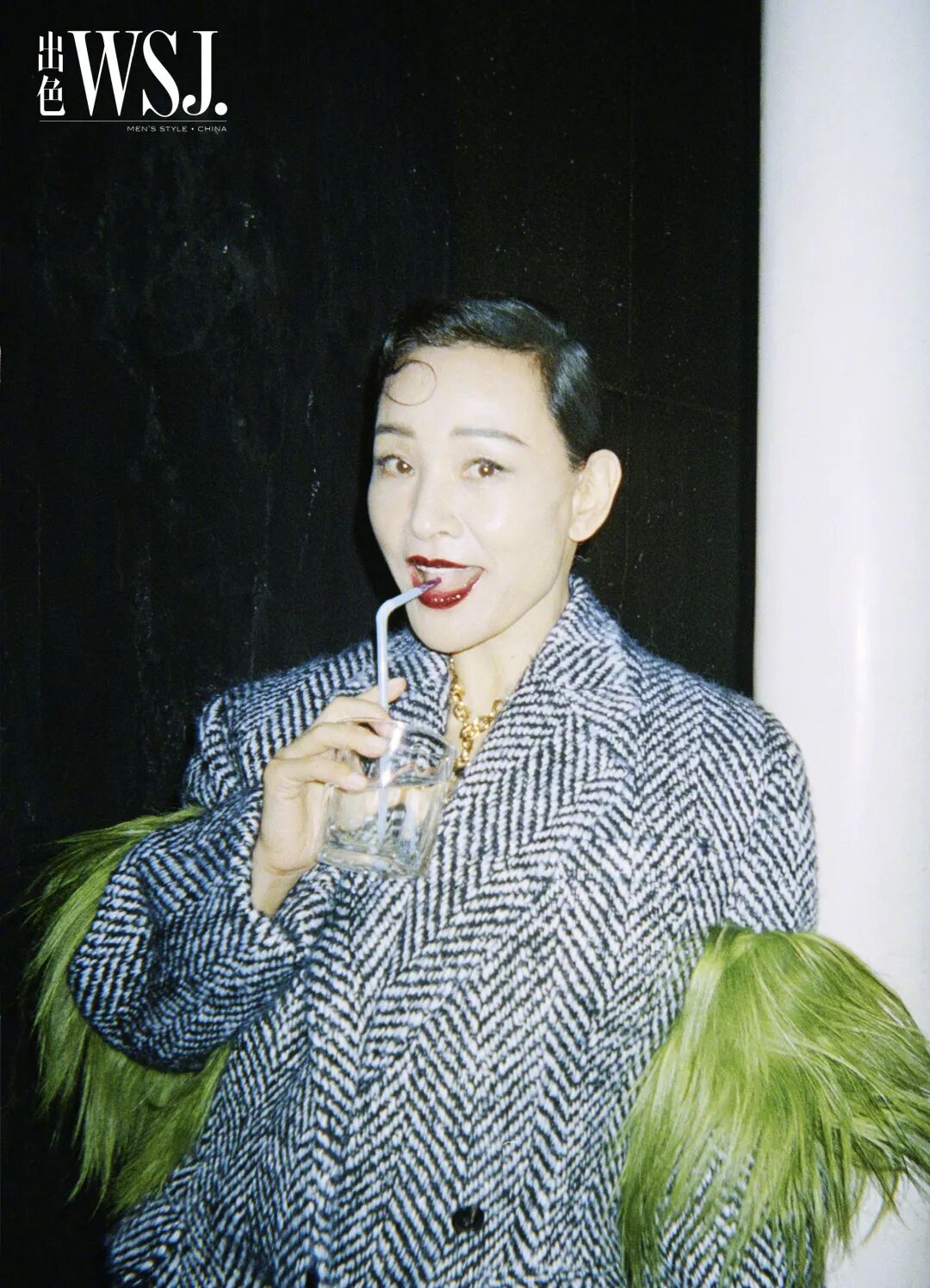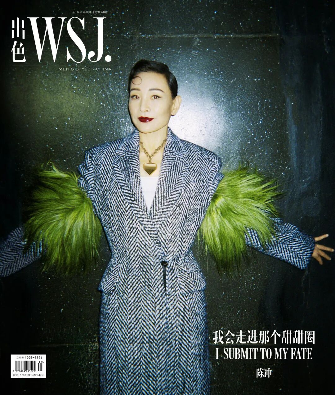 《WSJ.出色》十一月刊封面惊喜请来陈冲,影后拍杂志大片手到擒来,猪肝色口红+Prada水草一样的毛毛袖套西装套,她上身也只想夸好一位复古女郎。
