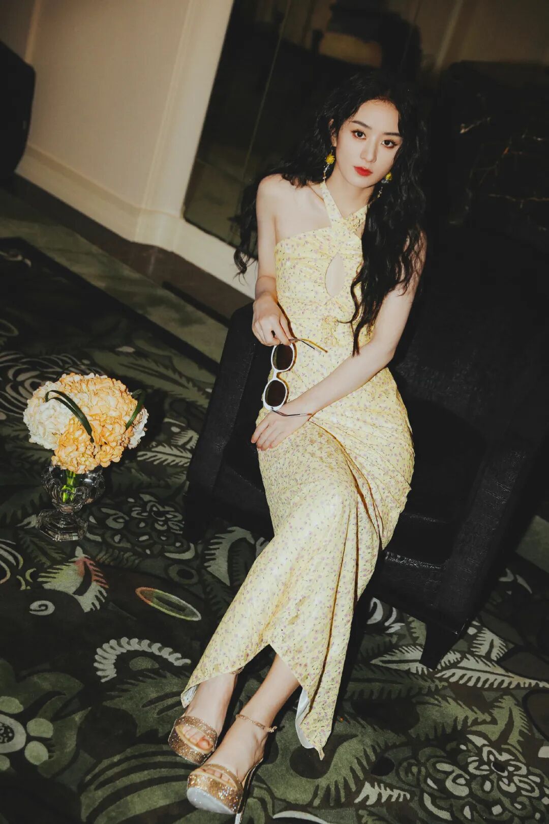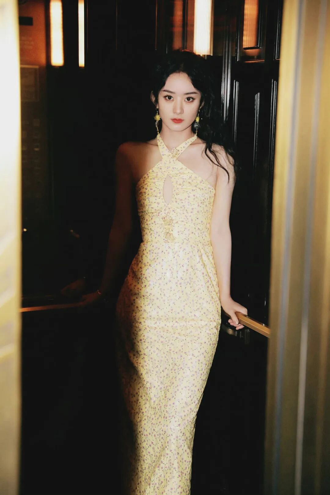 淡黄的长裙蓬松的头发永远都不会过时,赵丽颖最新照,交叉带的修身鱼尾碎花长裙,配上她的大红唇,过去的小白兔,竟然穿出了一些大气的感受。