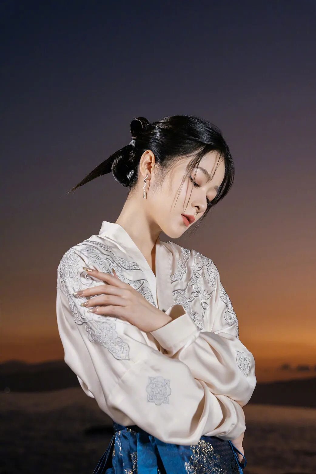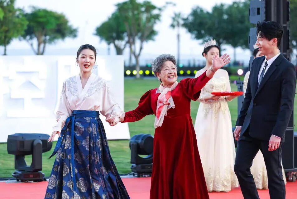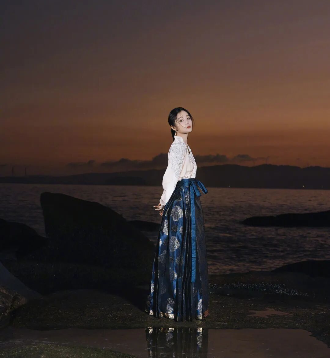 穿礼服裙的女星很多,但这次赢得最多称赞的是穿中国传统服饰马面裙的徐娇,碰上厦门的海边日落余晖仿佛是古画里走出来的女孩。