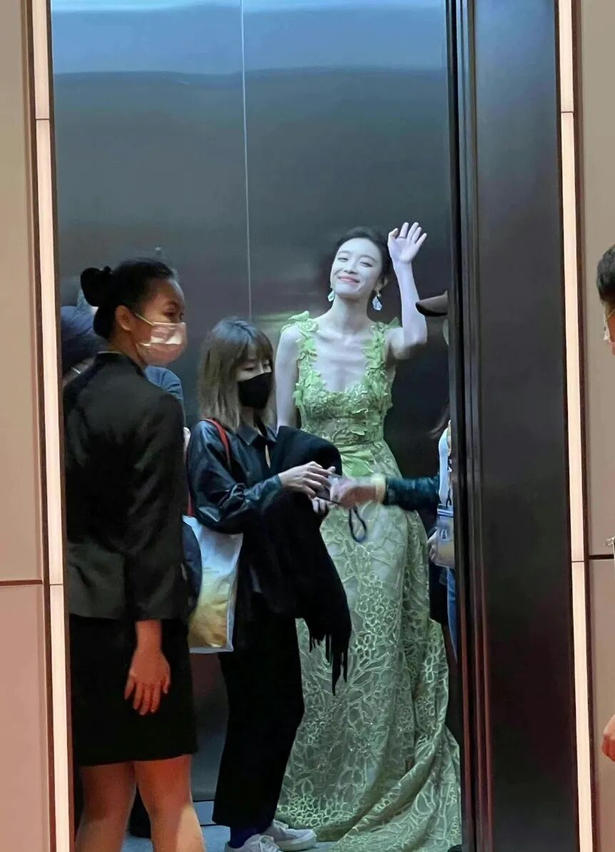 她就是穿着这条仙女裙,在朱一龙拿到大奖时脱口而出了一声NB。