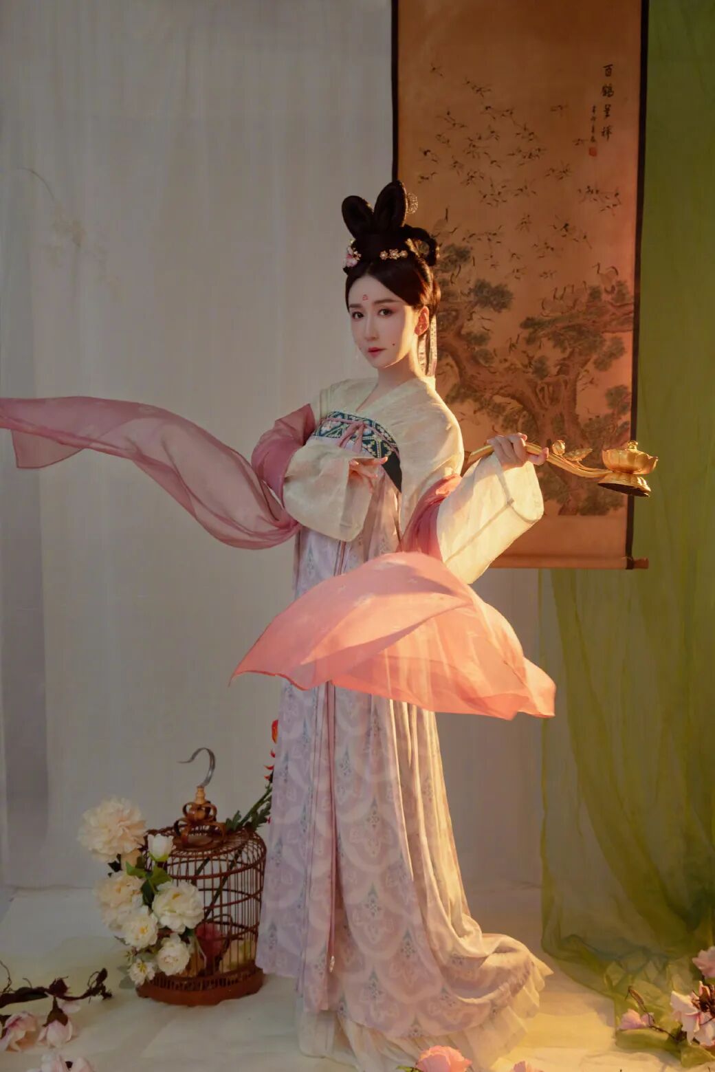 当天穿汉服的还有娄艺潇,一套素色的齐胸襦裙。