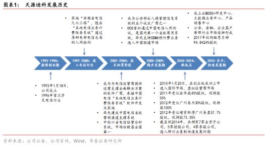 公司历史悠久,是国内领先的云BOSS和大数据综合解决方案提供商。深圳天源迪科信息技术股份有限公司成立于1993年,于2010年1月20日成功登陆深交所创业板。公司早年为电信、公安及其他行业提供业务支撑软件、综合应用类软件及服务咨询起步,于2015年成立产业云BOSS和大数据业务中心,聚焦转型行业SaaS服务提供商,是国内领先的产业云BOSS和大数据综合解决方案提供商。目前拥有8家全资子公司、5家控股子公司、3家参股公司,分支机构覆盖了北京、上海、广州、合肥、武汉、成都、西安、南宁、拉萨等全国26个省市。