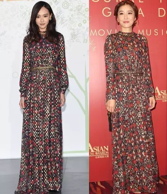 唐嫣甜美的外形完美hold住这条连衣裙,而郑秀文穿上身,胸平得就更像搓衣板了,看了好几眼才确认没把裙子穿反。