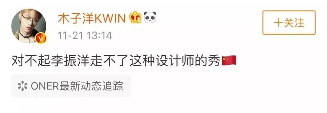 受邀走秀的Oner木子洋则公开表态:不走这种设计师的秀。