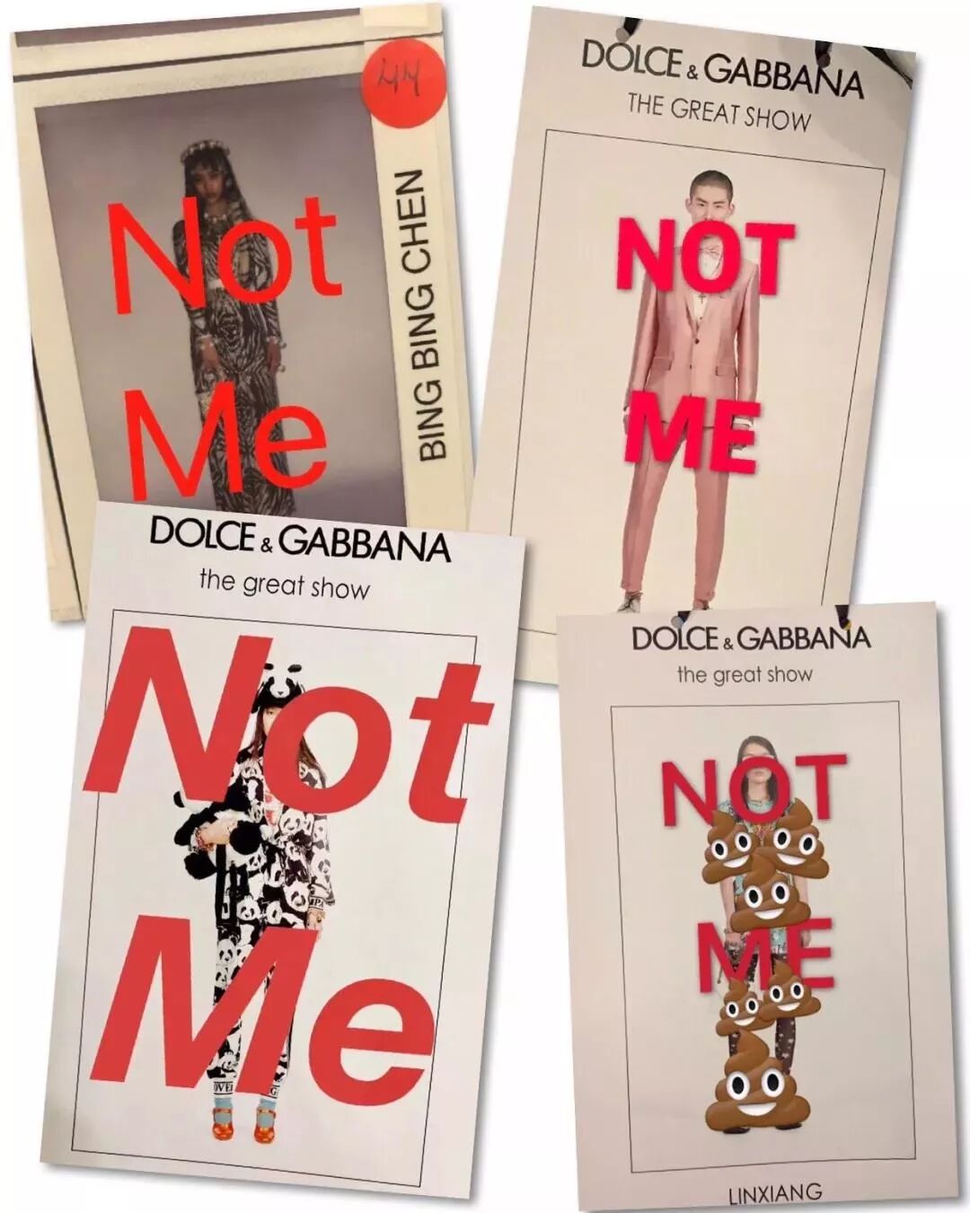 另外中国的模特军团金大川、纪凌尘、董翰宬、陈冰彬、薛冬琪、张文辉、赵俊莉、李霖梓等人也宣布退出D&G上海秀,并在社交媒体发起“Not Me”行动。