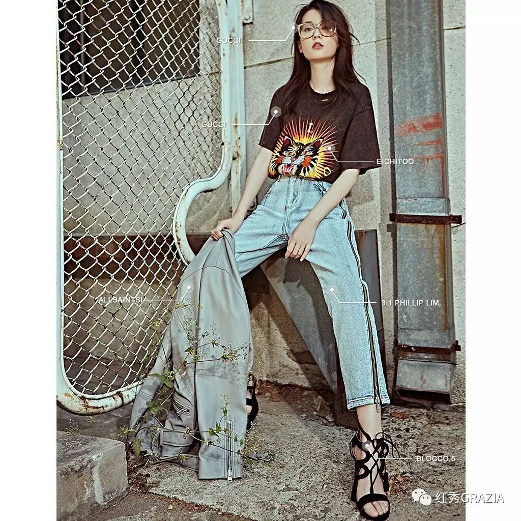 想不到吧,迷恋上摇滚歌者的关雎尔乔妹亲自驾驭起摇滚风单品也可这般灵气十足,朋克风TEE搭配拉链式牛仔裤,大象灰皮衣也是帅气中带点柔美,点睛之笔的水钻眼镜则让我们乔欣酷似英伦乐团吉他手。