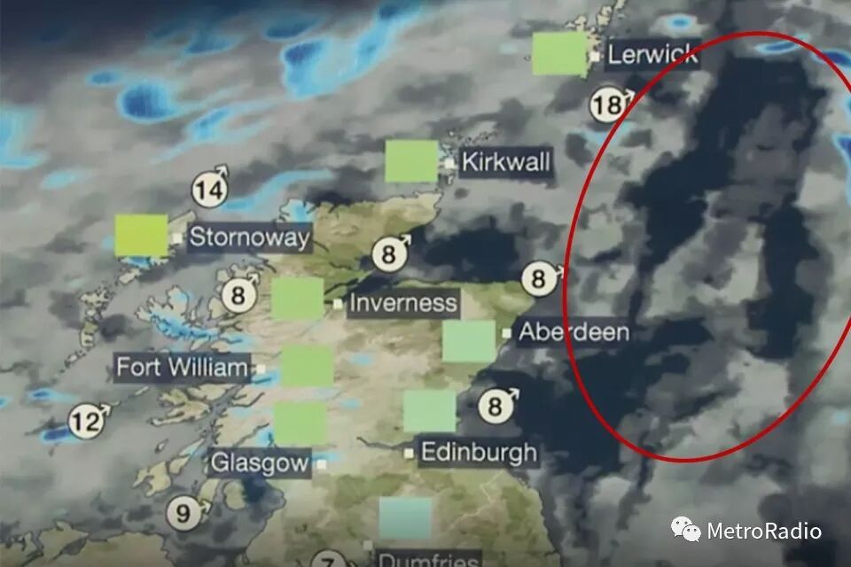 在昨日BBC Weather节目中,眼尖的网友在苏格兰东海岸上空的卫星云图上发现了一个形状奇特的云团,并且看起来很像已故巨星Prince。网友们甚至戏称,当时的苏格兰应该正在下Purple Rain。