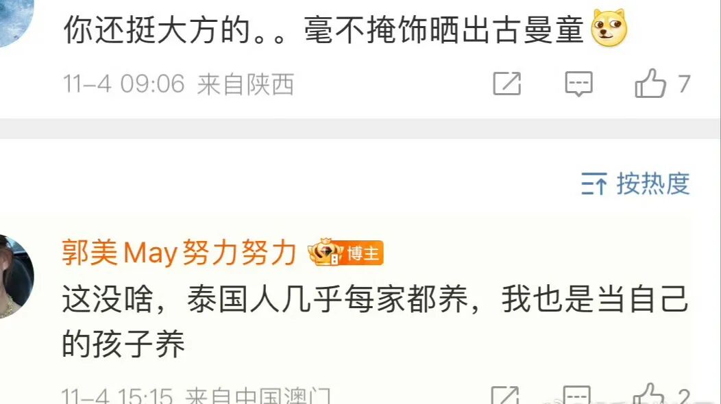最近她在泰国,然后抱着那边的“娃娃”然后直接拍照片秀,被网友问是不是小?,她直接说是。