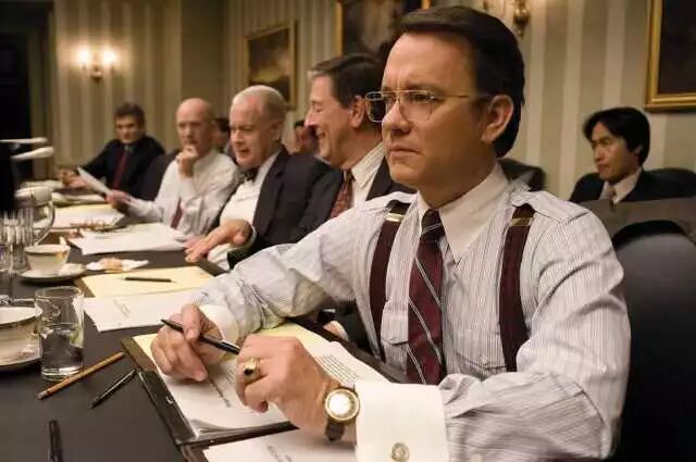 汤姆·汉克斯在《查理·威尔森的战争》中饰演个性丰富的底层阶级爱国人士,纽扣领衬衫为他塑造了一名工薪阶级的社会形象。