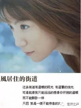 爱情之花是绚烂夺目的,然而在风居住的街道中里的这对恋人,还未正式开始就要结束,让听众扼腕叹息,在岁月的流逝中,年华老去。然而那炽热的爱情,却还依旧静静等待那人的归来,曲中的恋人在余生中却再没有得到对方的回音。