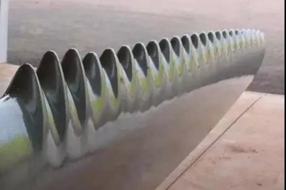 特点:把涡轮典型的光滑叶片进行了重新设计,在结节的地方新加入了一组齿轮,如同鲸鳍的凸起一般。鲸鳍有适当的倾斜坡度是能够帮助它更好的在海水中上升和下降。但是倾斜的太多则有反效果——停滞。在涡轮叶片中加入这种类似于结节这样的结构能防止停滞现象的出现,并允许最大角度的倾斜。在弱风情况下,有一定倾斜角度的叶片在理论上是可以产生更多的能量。